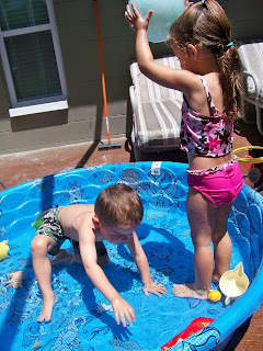 | Taking a quick ride on the fire truck before we head outside to play in the water. |